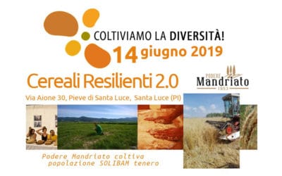 Il 14 giugno si svolgerà al Podere Mandriato un incontro di presentazione del progetto Cereali Resilienti 2.0, con visita al campo coltivato con la Popolazione Solibam di grano tenero. Coltiviamo la Diversità - Cereali Resilienti 2.0 è un progetto della rete semi...